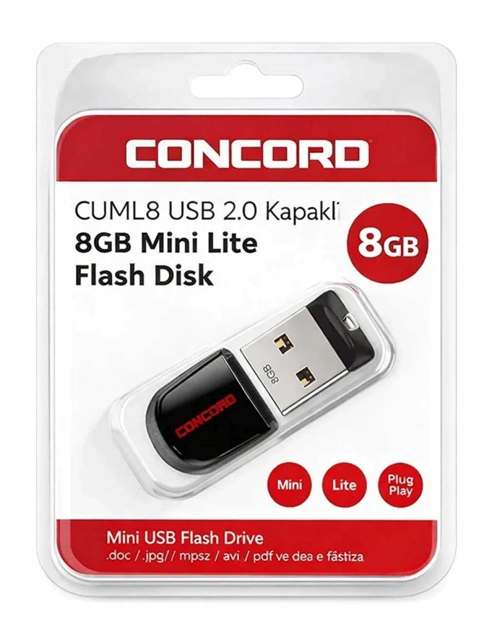 Concord CUML8 8GB USB 2.0 Mini Lite Kapaklı Flash Bellek ile verilerinizi güvende tutabilir ve ihtiyacınız olduğunda kolayca erişebilirsiniz.