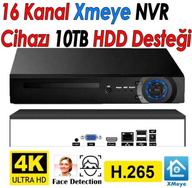 J-TECH 4K 16 Kanal Network Video 8MP 10TB XMeye NVR IP Kamera Güvenlik Kayıt Cihazı J-O16NVR
