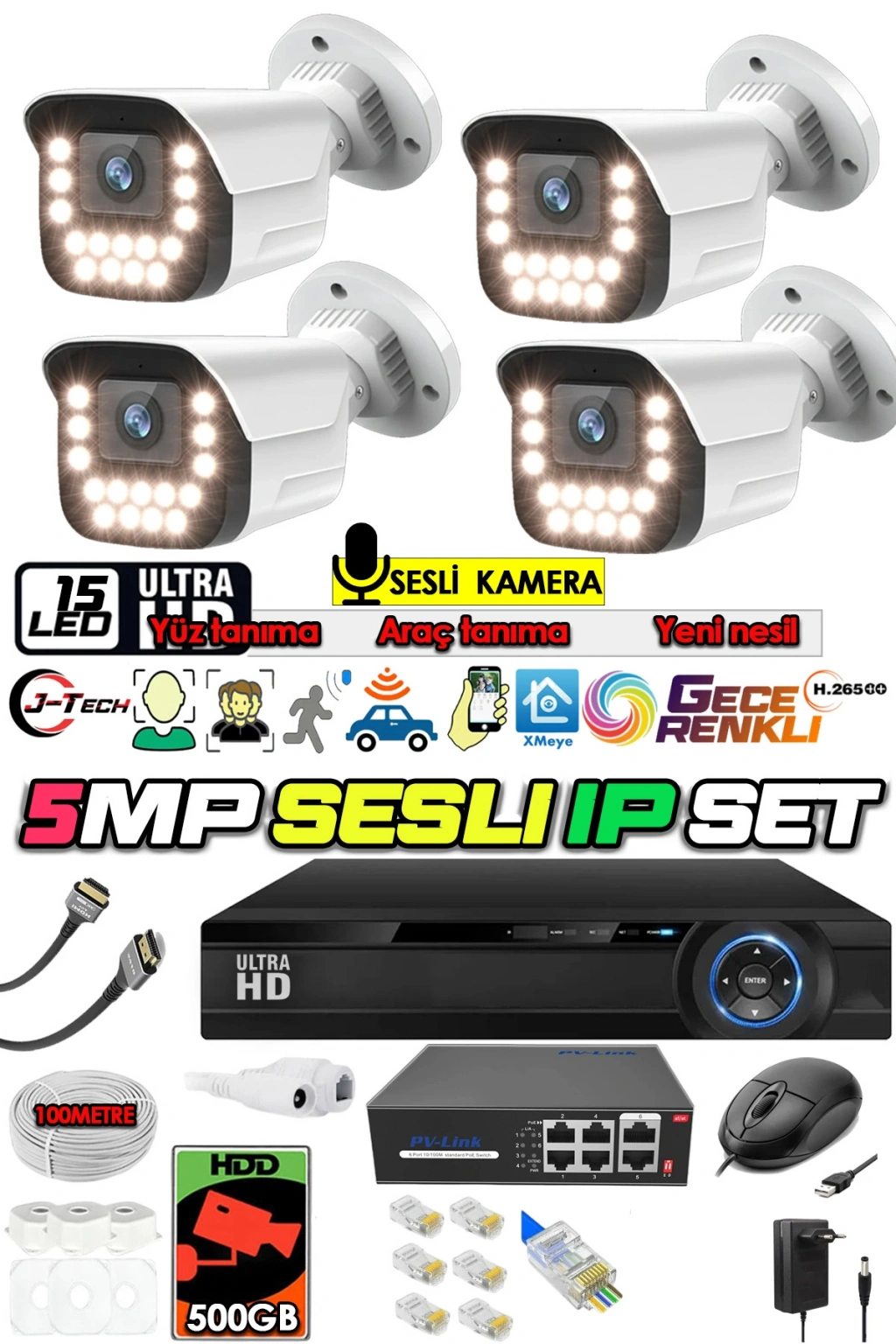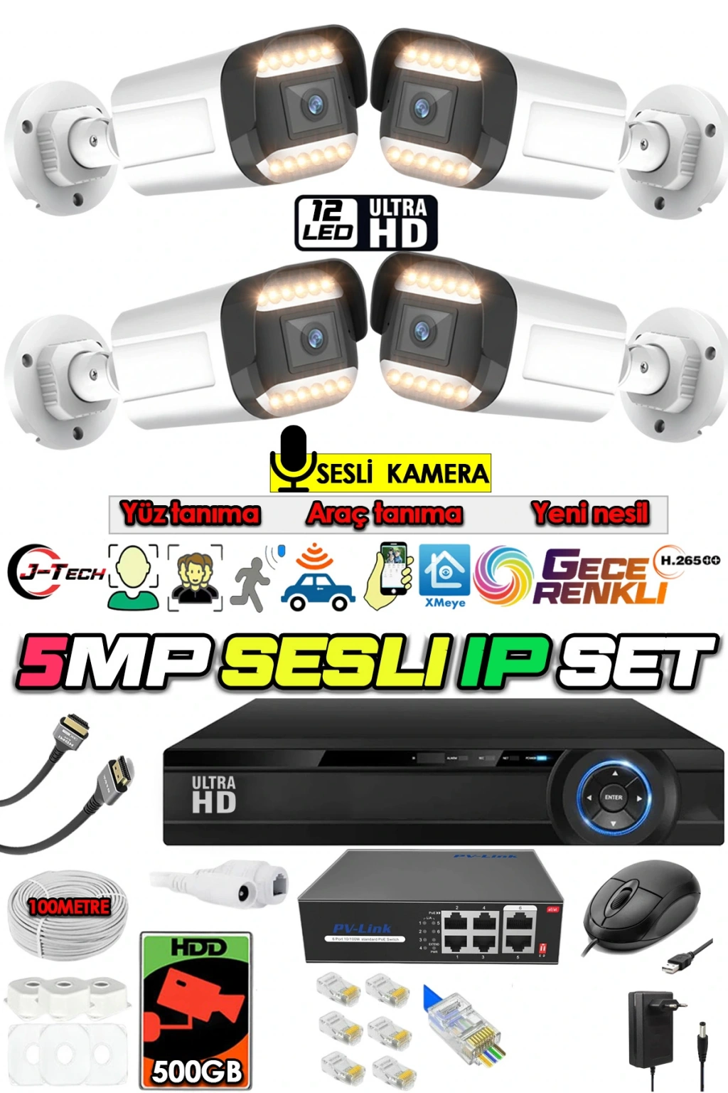 J-TECH 5MP IP Sesli Renkli Gece Görüşlü 4 Lü Akıllı Güvenlik Kamera Seti, eviniz veya iş yeriniz için mükemmel bir güvenlik çözümü sunar. Yüksek çözünürlüklü 5MP kameralar sayesinde net ve keskin görüntüler elde edebilirsiniz.