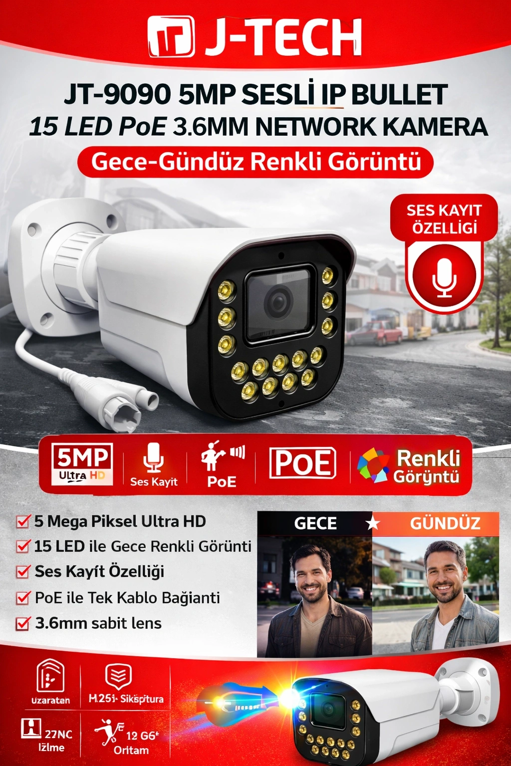 J-TECH 5MP IP Sesli Renkli Gece Görüşlü 4 Lü Akıllı Güvenlik Kamera Seti ile evinizi veya iş yerinizi 24/7 güvende tutabilirsiniz. Kolay kurulumu ve kullanımıyla da pratik bir çözüm sunar.