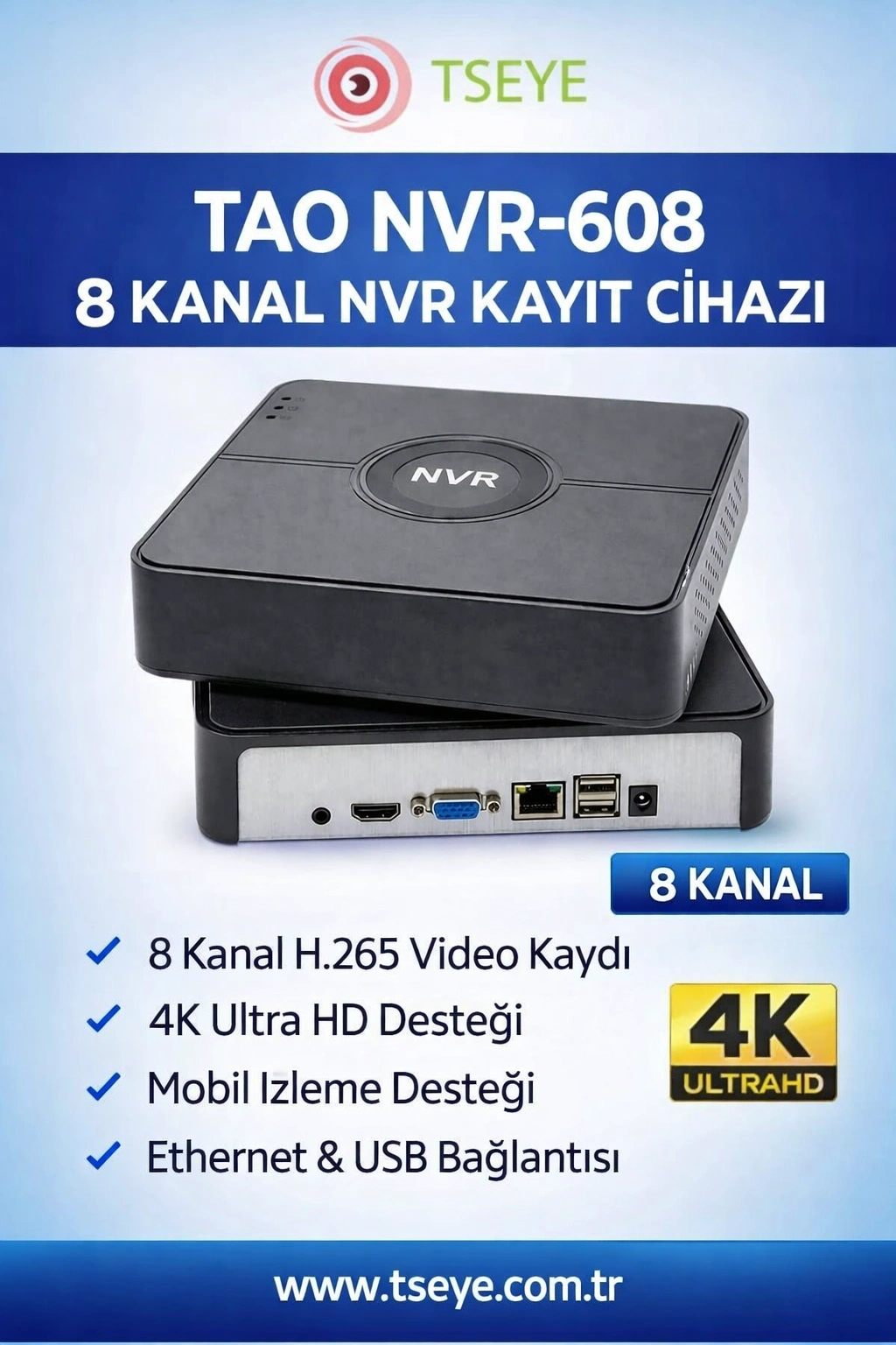 8 adet kamera ile geniş bir alanı izleyebilir, her açıdan detaylı bilgilere erişebilirsiniz.