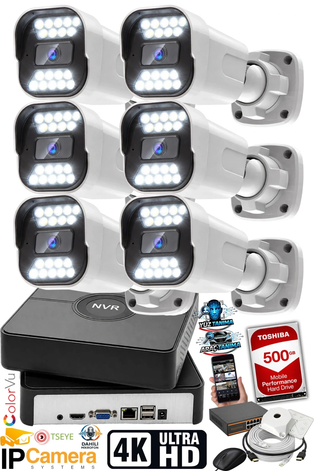 J-TECH 5MP Sesli 6 Li 1818 iP Renkli Gece Görüşlü 500GB Akıllı Güvenlik Kamera Seti, evinizin veya işyerinizin güvenliğini sağlamak için ideal bir çözümdür.