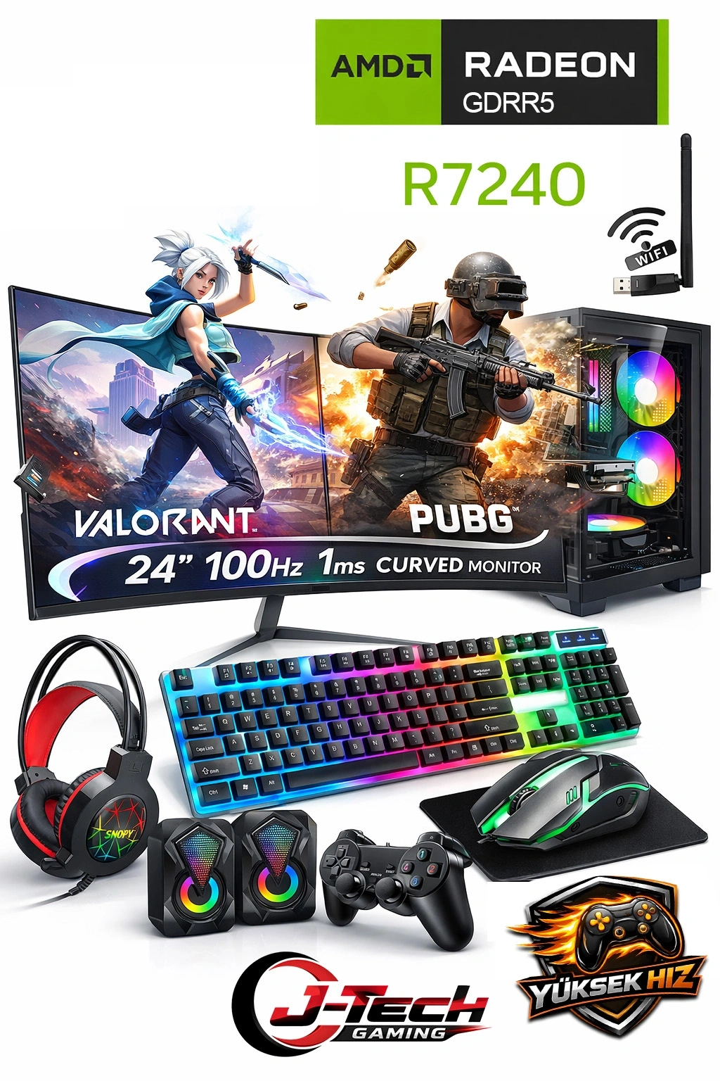 J-TECH Blood i5-3470 3.60GHz 16GB RAM 256GB SSD GDDR5 R7240 4GB 24" Curved Akvaryum Oyuncu Bilgisayarı