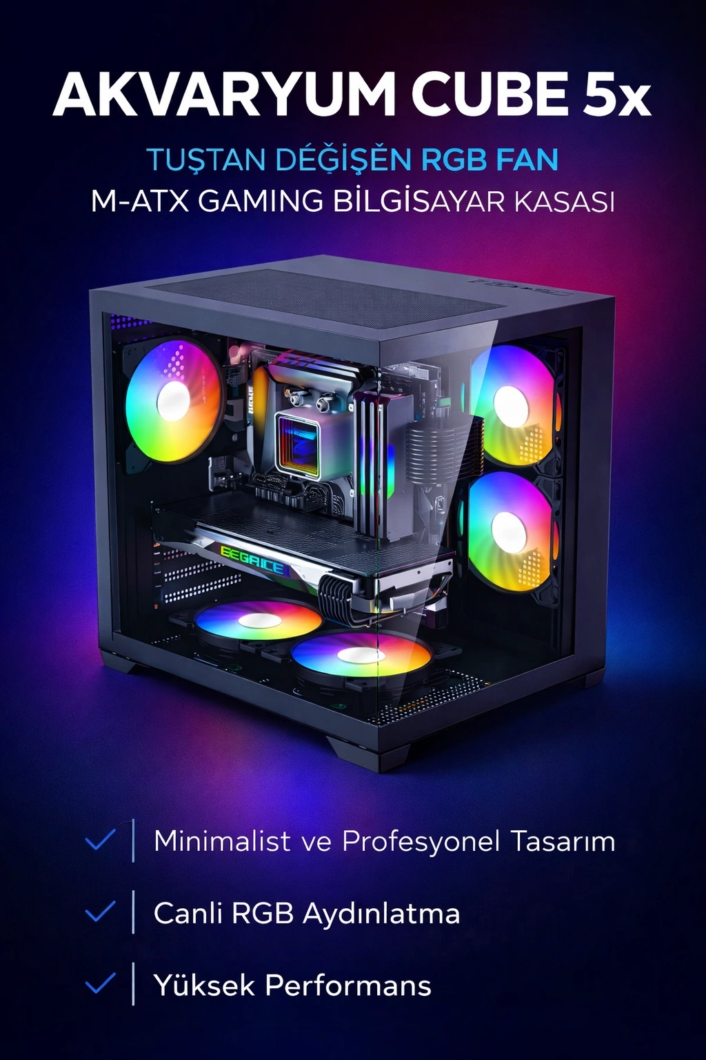 J-TECH G399 i5 3470 16GB 256GB SSD GDDR5 R7240 4GB Oyuncu Akvaryum Cube Gaming Masaüstü Bilgisayar