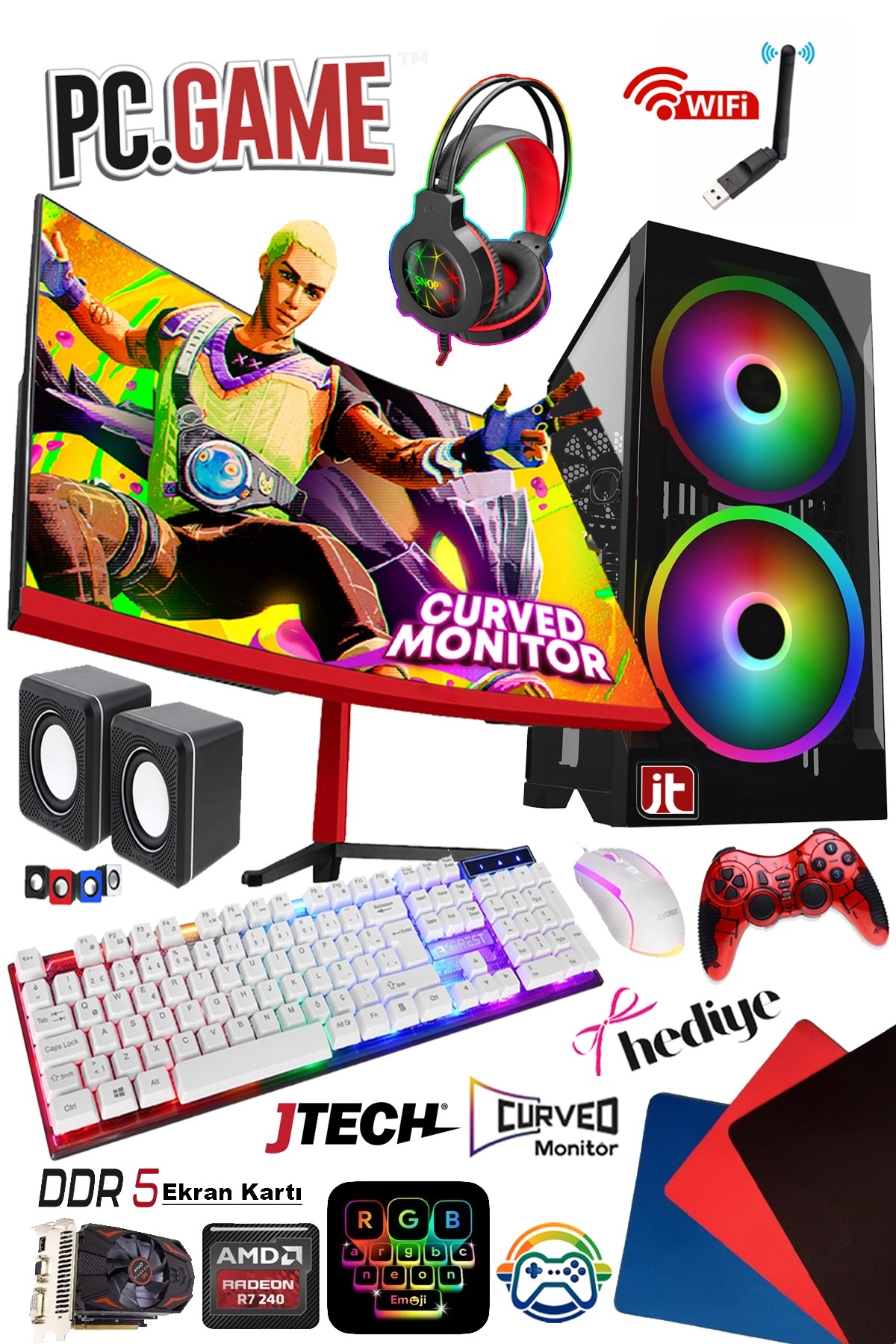 J-TECH Dream i5-3470 3.60GHz 16GB RAM 256GB SSD GDDR5 R7240 4GB 24" Curved Oyuncu Bilgisayarı