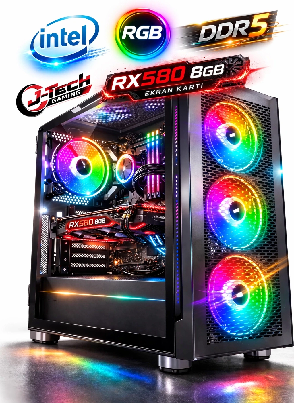 J-TECH Inferno i5 6500TE 16GB RAM 256GB SSD RX580 8GB Gaming PC, hem performansıyla hem de görsel estetiğiyle oyun tutkunlarının vazgeçilmezi olmaya aday.