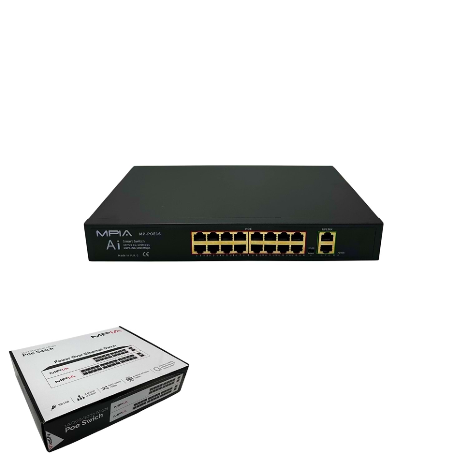MPIA MP-POE16 250W 10/100 /1000 Mbps 16 Port Metal Kasa Poe Switch