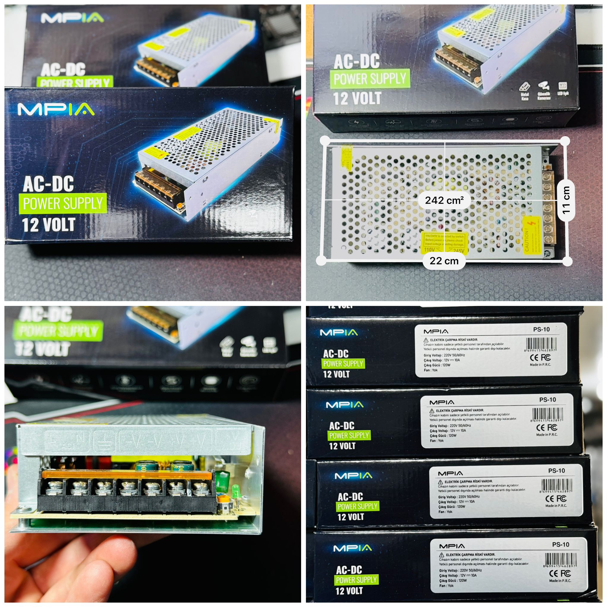 MPiA PS-10 12V 10A Amper 120W Metal Güvenlik Kamera Şerit Led Adaptör Trafo