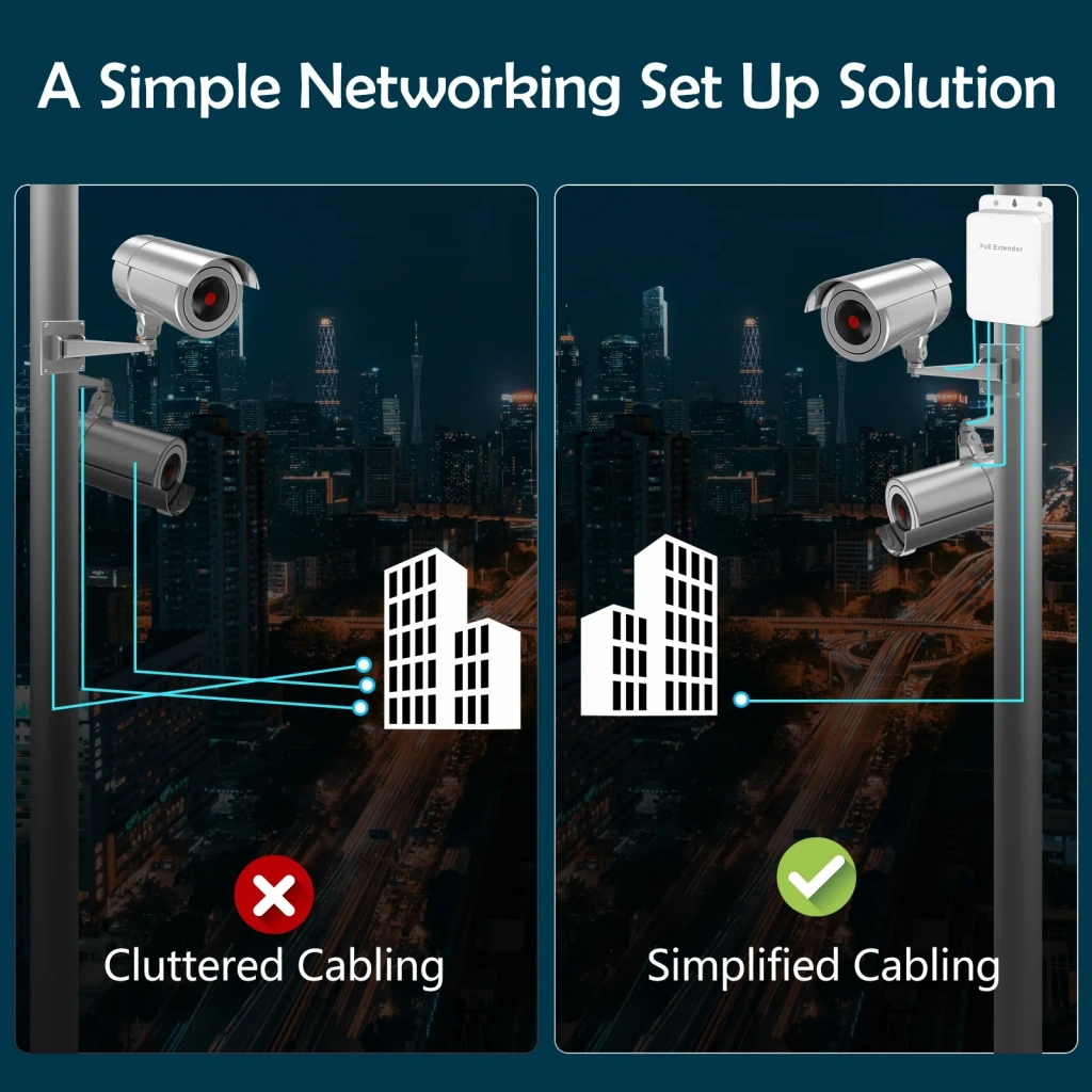 J-Tech ND-PE103W PoE Extender, açık alanlarda ağ cihazlarının güç ihtiyacını karşılamak için ideal bir çözümdür.