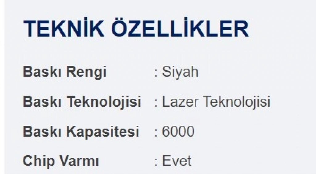 Baskı kapasitesi:1.600 sayfa a4 %5 sayfa yoğunluğuna göre hesaplanmıştır