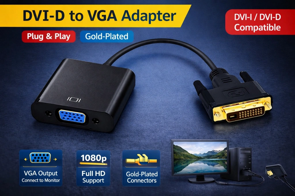 Platoon PL-7200 DVI to VGA Dönüştürücü Çevirici Kablo Adaptör, bilgisayarınızı DVI çıkışlı cihazlarla VGA bağlantı noktalarına kolayca bağlamanızı sağlar.