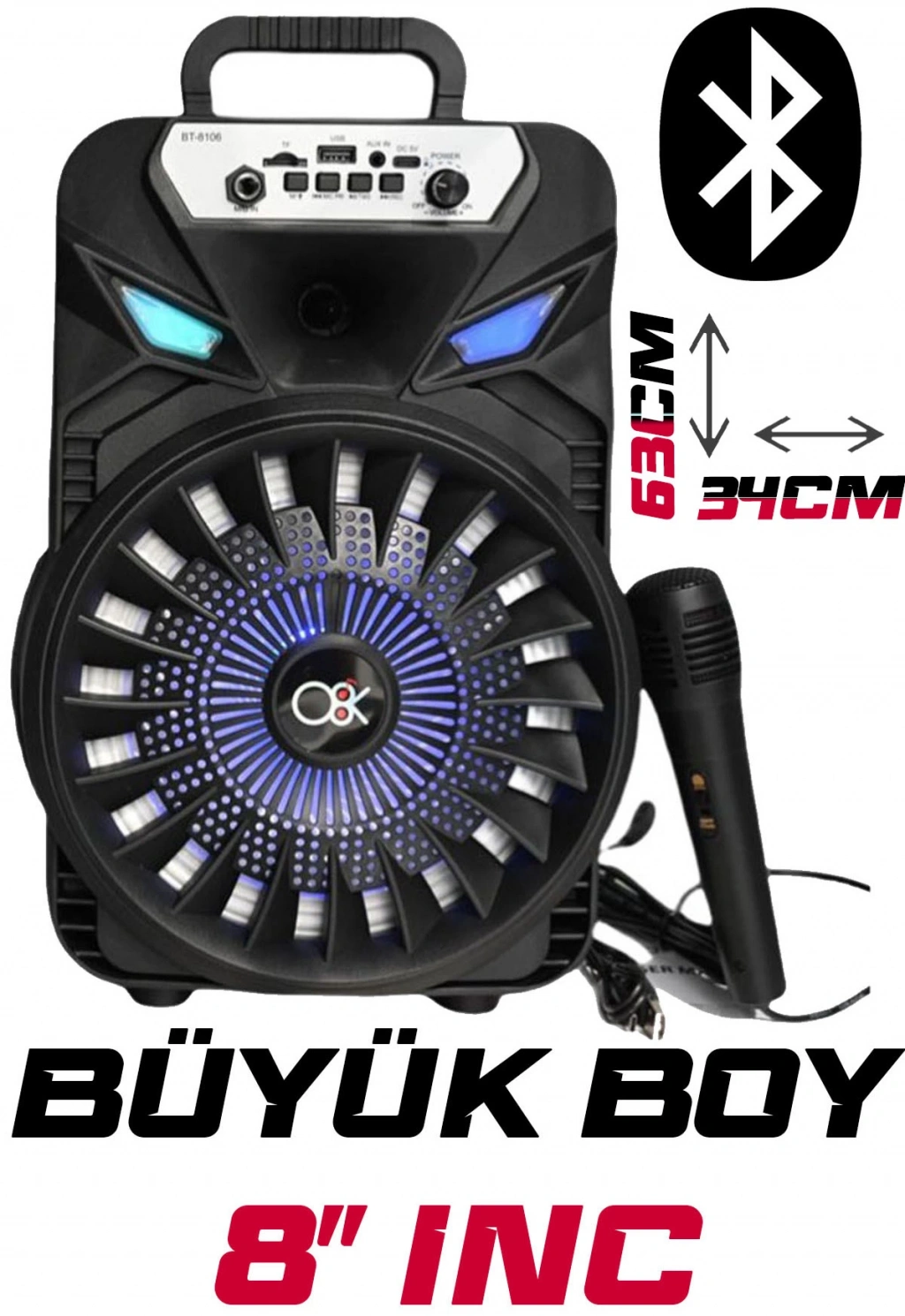 Platoon PL-8106 BT USB SD AUX 8 İNÇ Mikrofonlu Anfi Yüksek SES Taşınabilir RGB Işıklı Hoparlör