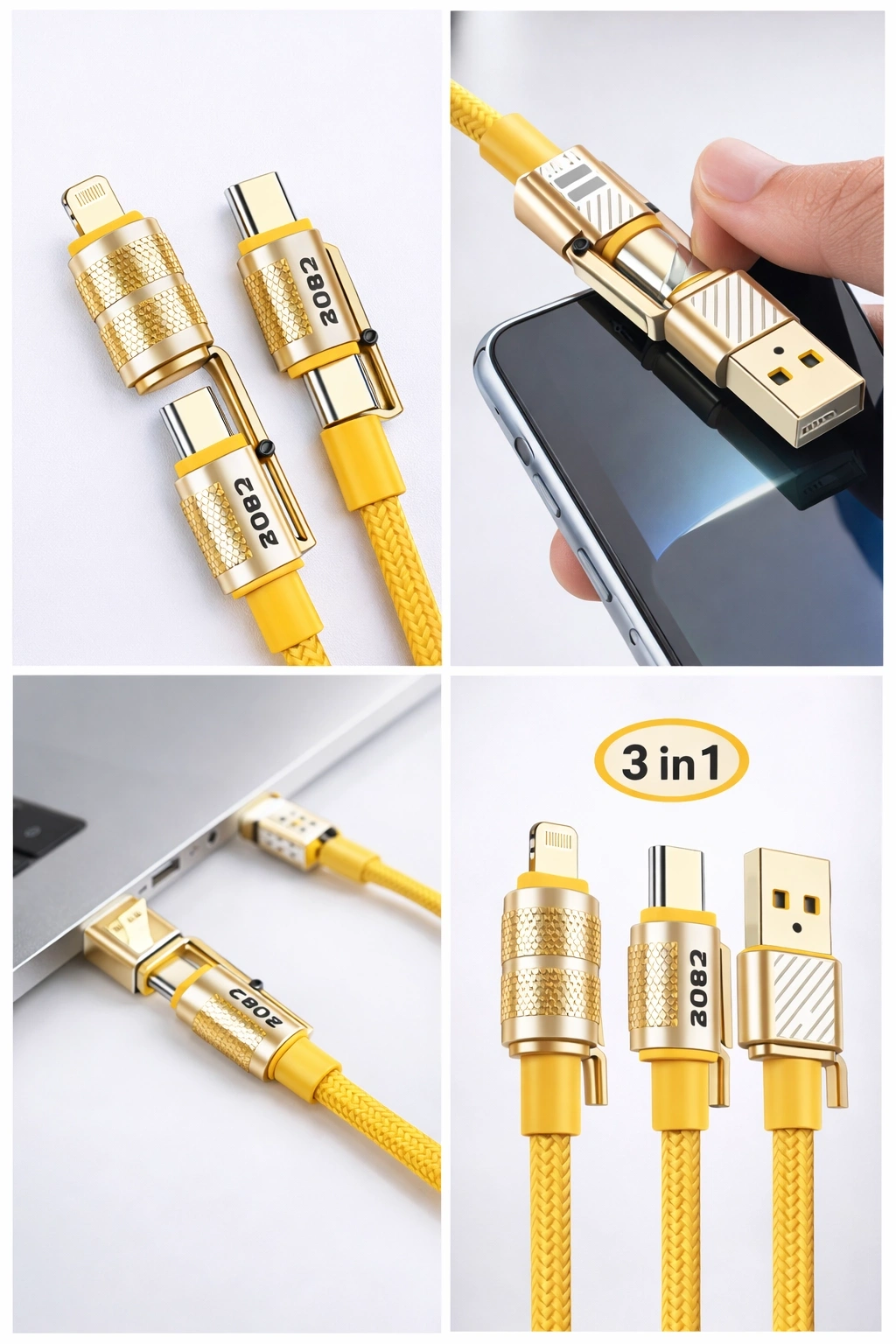 Platoon PL-8631 4in1 Hızlı Şarj Data Kablosu, Type-C, Micro USB ve Lightning portlarına sahip cihazlar için ideal bir çözümdür. Bu çoklu kablo ile birden fazla cihazı aynı anda şarj edebilir, veri transferi yapabilirsiniz.