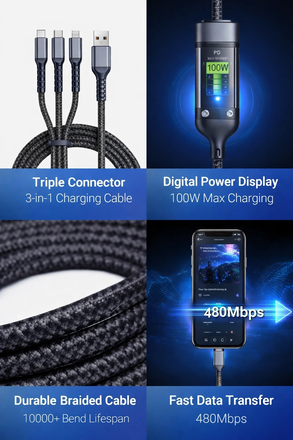 Dayanıklı Yapı: Özel örgülü kablo tasarımı sayesinde kırılmaya ve yıpranmaya karşı dayanıklıdır.