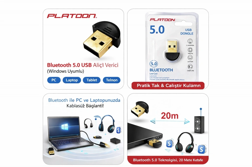 Platoon PL-9337 Bluetooth 5.0 USB Alıcı Verici, Windows işletim sistemiyle uyumlu olarak çalışan bir çevre birimidir. Hızlı ve stabil bir bağlantı sunan Bluetooth 5.0 teknolojisiyle donatılmıştır.