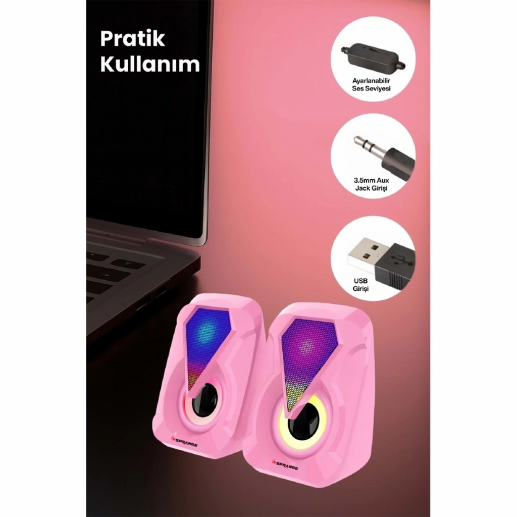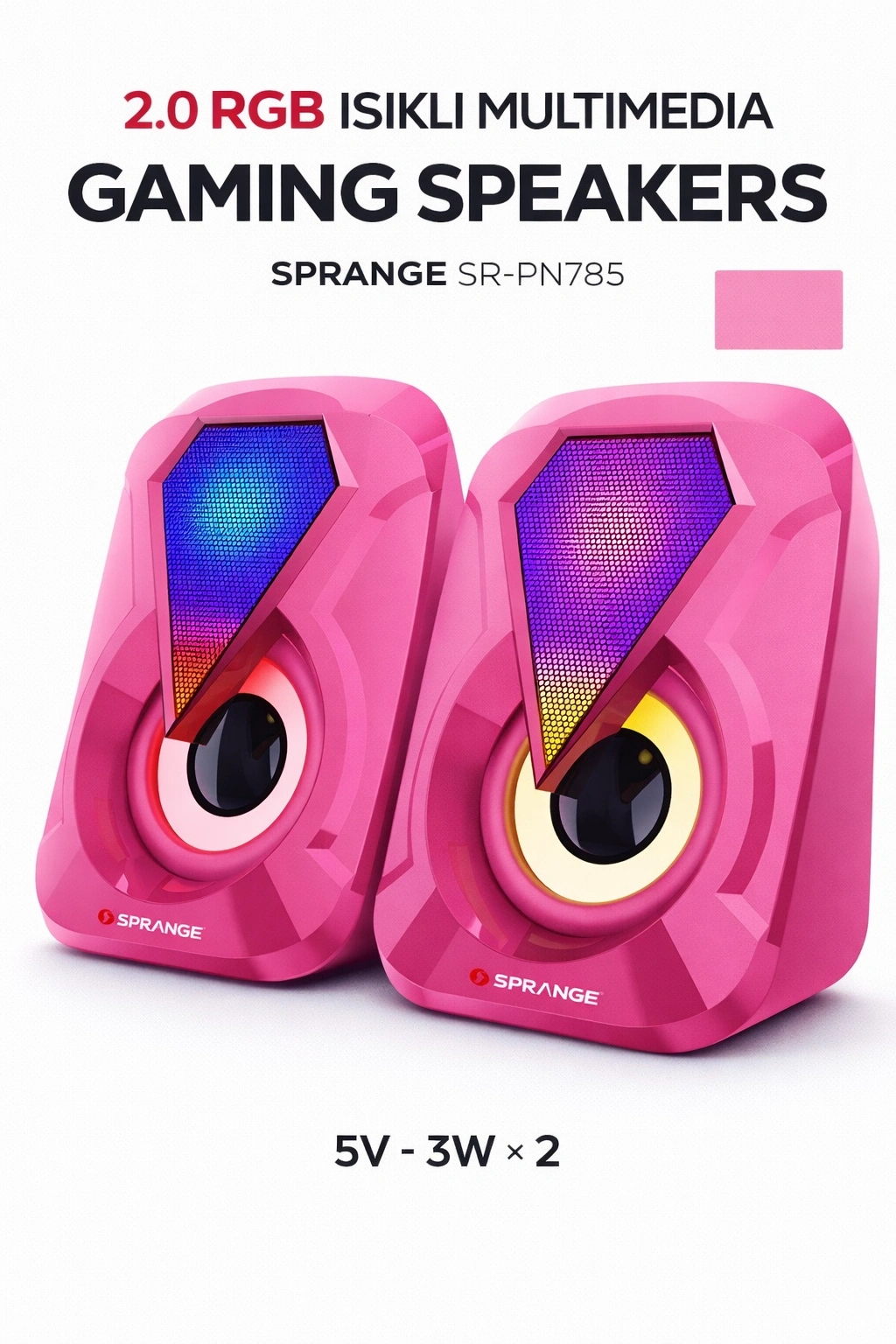 Sprange SR-PN785 2.0 RGB Işıklı Multimedia 5V 3W*2 Gaming Oyuncu Speaker, oyuncular için özel olarak tasarlanmış yüksek performanslı bir ses sistemi olarak öne çıkıyor.