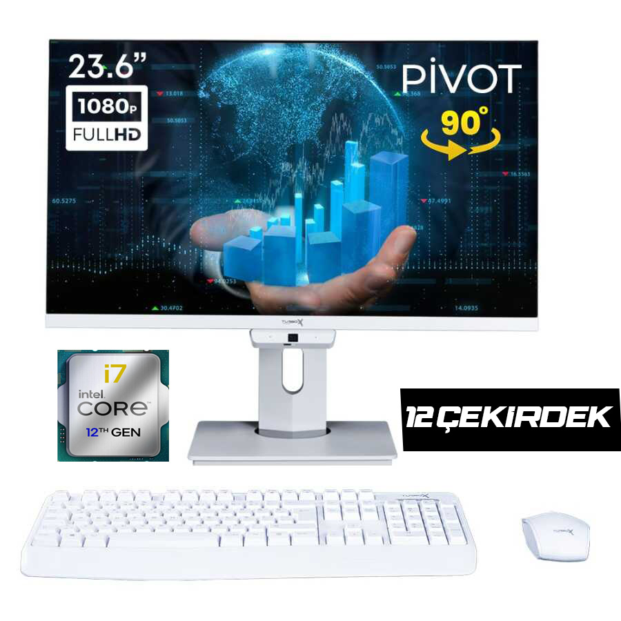 Turbox A12900 i7-1265U 4.80GHz 12 Çekirdek 16GB RAM 512GB SSD 24" Pivot Webcam WiFi All in One Bilgisayar